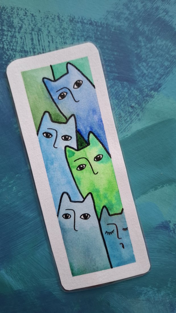 Zakładka do książek malowana akwarelami na specjalnym papierze o gramaturze 300g/m2. Każda zakładka jest wyjątkowa i niepowtarzalna, dwustronna , niektóre zdobione delikatnie złotymi elementami.