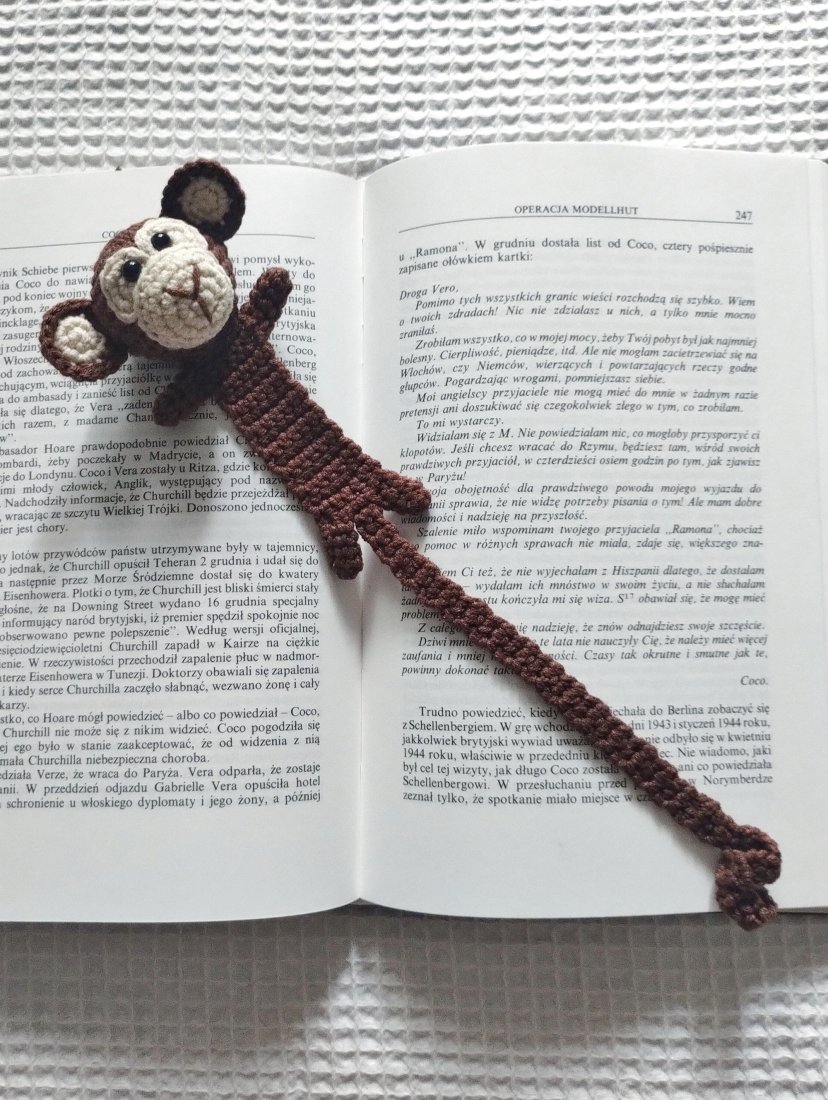 Tagi: #małpka dla dziewczynki, #szydełkowa zakładka do książki, #zakładka do książki małpka, #zakładka do książki na prezent