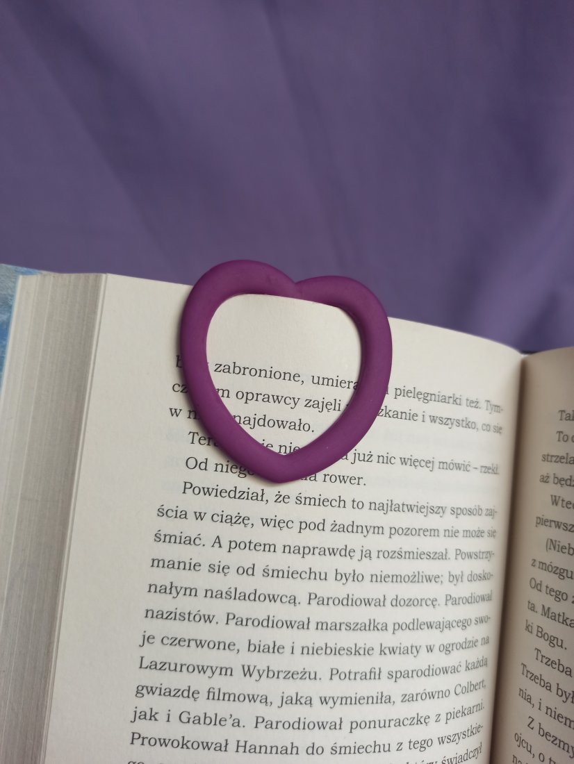 Zakładka do książki w kształcie serduszka wykonana z wysokiej jakości gliny polimerowej w kolorze ciemno fioletowym.