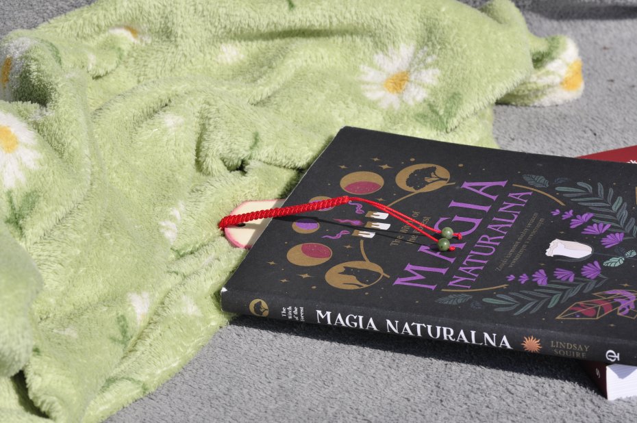 Dodatkowo ozdobiona pleceniem ze sznurka, zakończonym naturalnym kamieniem: