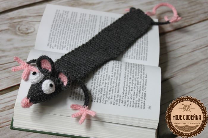Zakładka do książki wykonana z włóczki akrylowej szydełkiem. Zabawna i wygodna będzie fajnym prezentem. Długość całkowita (od głowy do ogonka) ok 28 cm.