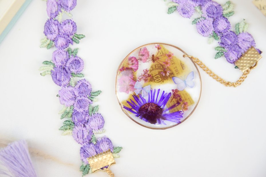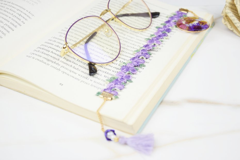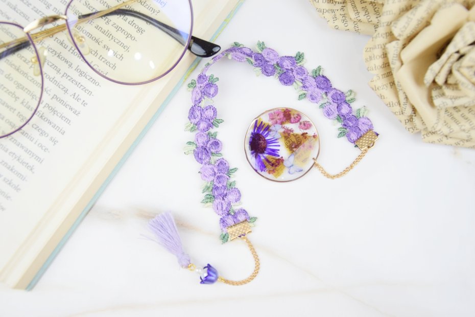 Tagi: #zakładka do książki, #zakładka haftowana, #zakładka z kwiatami, #zakładka z żywicy