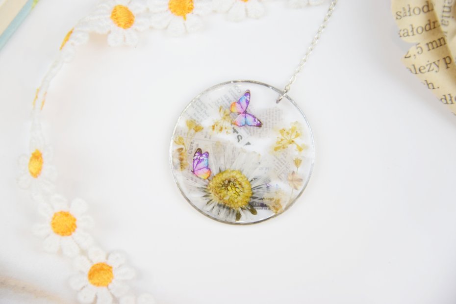 – Żywiczna zawieszka z suszonymi kwiatami (3,5 cm)