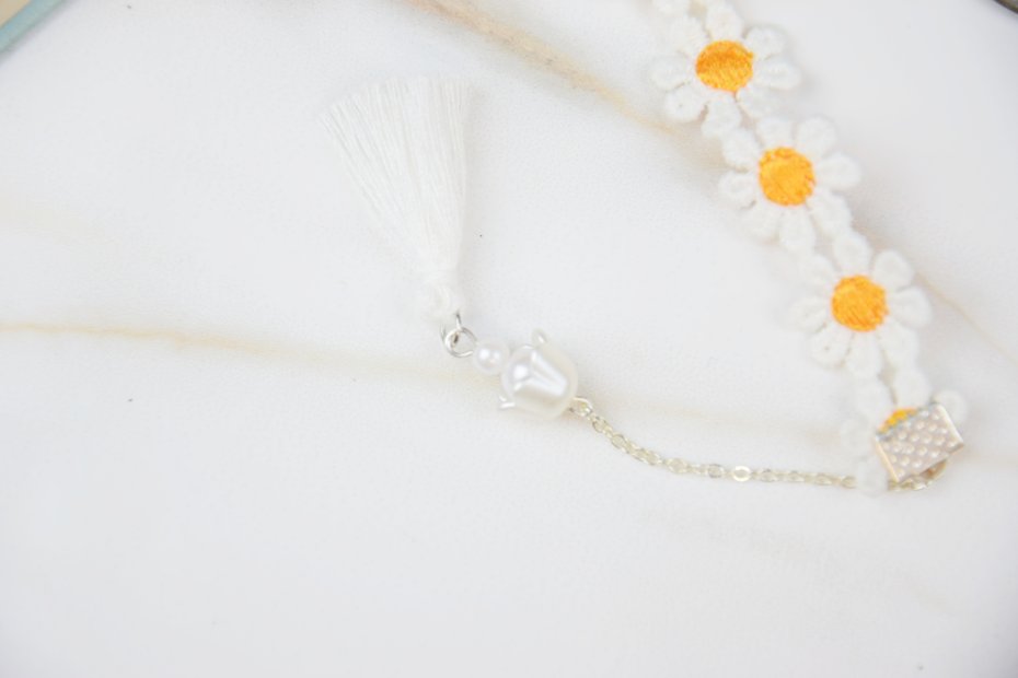 Na drugim końcu łańcuszka odnajdziesz chwost otulony kwiatem – subtelny akcent, który przy każdym ruchu opowiada własną historię ciszy, światła i wiatru. To zakładka stworzona dla tych, którzy potrafią dostrzec poezję w liściu, magię w płatku i harmonię w detalu.