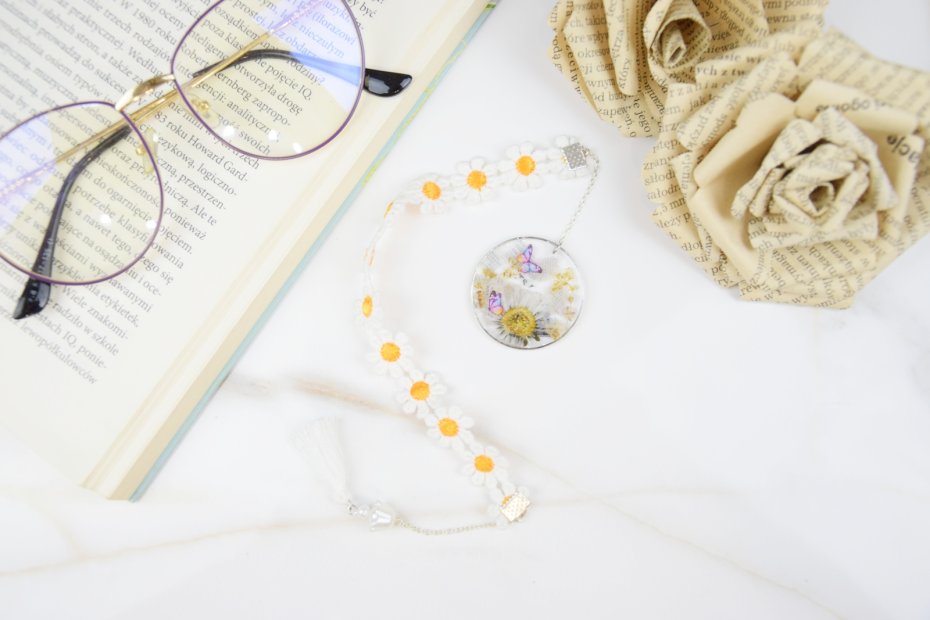 Tagi: #zakładka do książki, #zakładka haftowana, #zakładka z kwiatami, #zakładka z żywicy