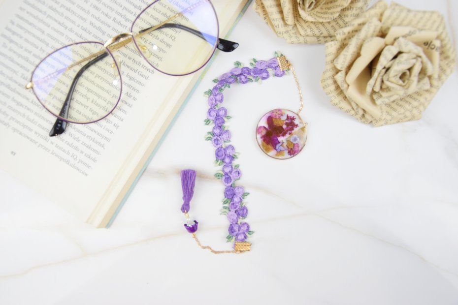 Tagi: #zakładka do książki, #zakładka haftowana, #zakładka z kwiatami, #zakładka z żywicy