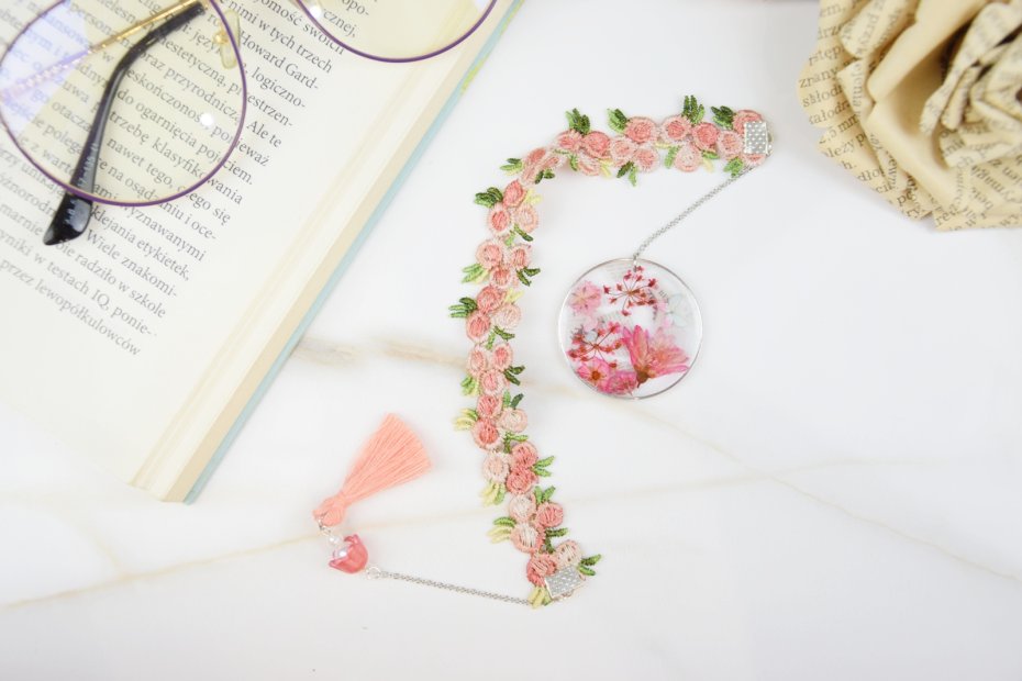 Tagi: #zakładka do książki, #zakładka haftowana, #zakładka z kwiatami, #zakładka z żywicy