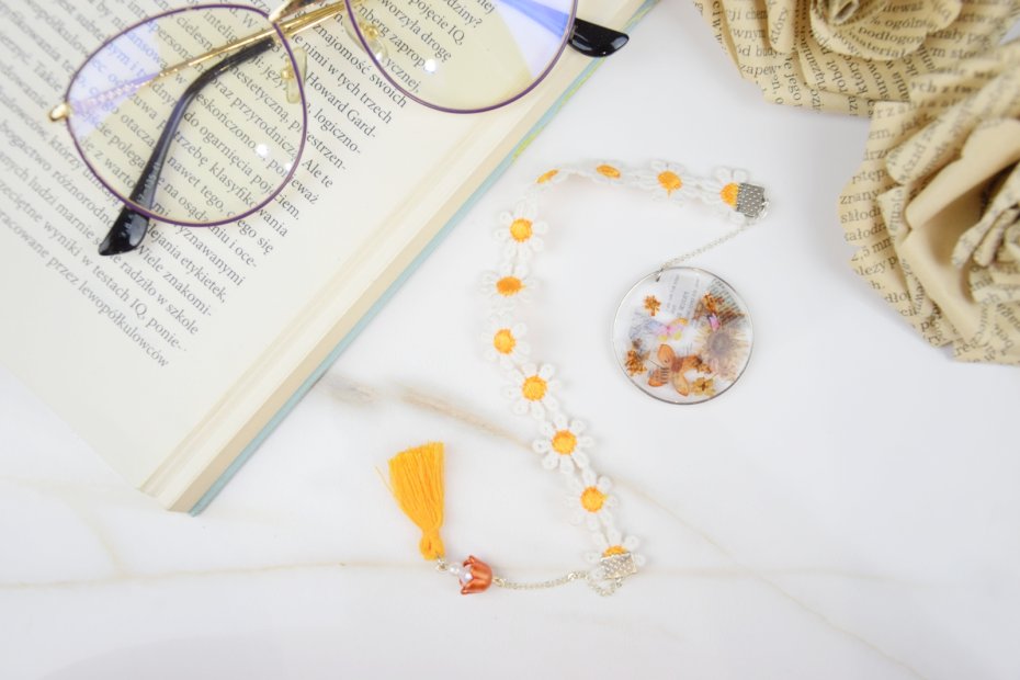 Tagi: #zakładka do książki, #zakładka haftowana, #zakładka z kwiatami, #zakładka z żywicy