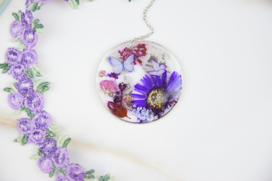 – Żywiczna zawieszka z suszonymi kwiatami (3,5 cm)