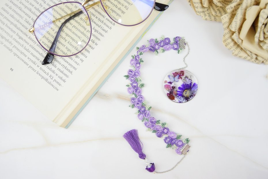 Tagi: #zakładka do książki, #zakładka haftowana, #zakładka z kwiatami, #zakładka z żywicy