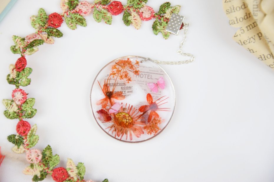 – Żywiczna zawieszka z suszonymi kwiatami (3,5 cm)