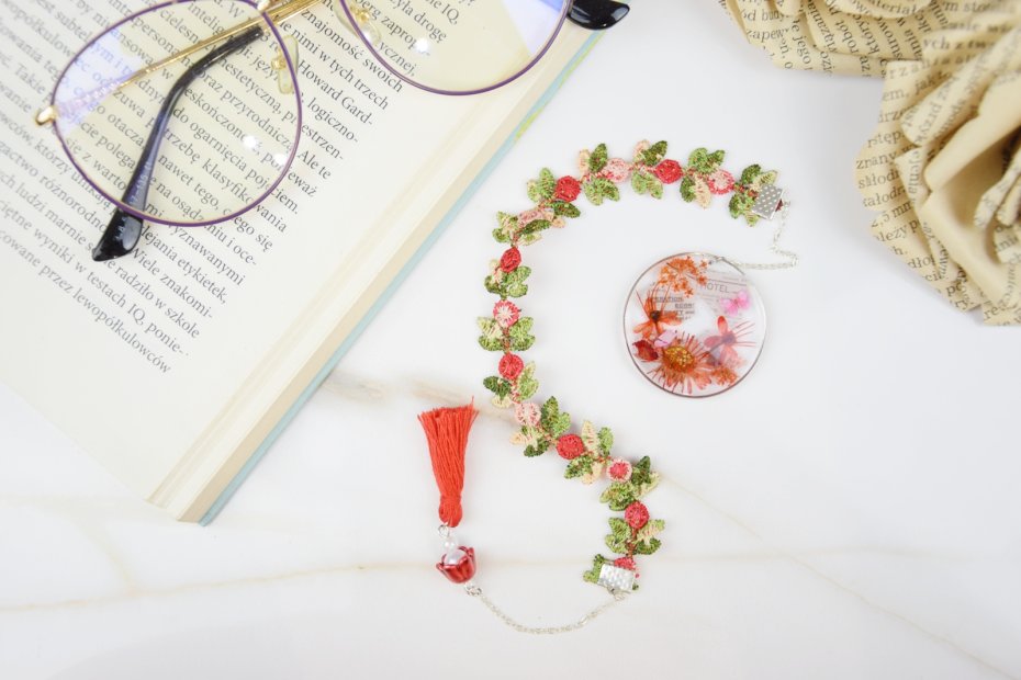 Tagi: #zakładka do książki, #zakładka haftowana, #zakładka z kwiatami, #zakładka z żywicy