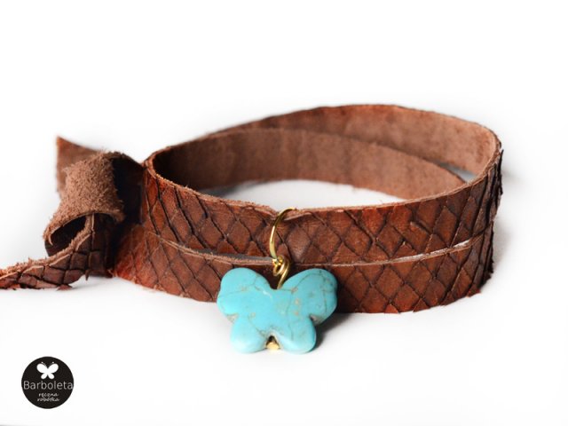 skóry w odcieniu brązu, skóra w stylu vintage, z zawieszką motylkiem.