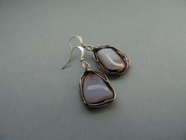 Kolczyki z chalcedonów o długości ok. 4 cm ( z biglem).