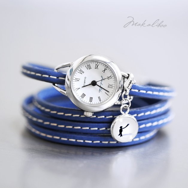 Śliczny, delikatny, kobiecy, zegarek. Mój autorski projekt ma tarczę wielkości 18 mm średnica zegarka 23 mm. Baza w kolorze srebrnym. Odpinany cherms z autorską grafiką ma średnicę 12 mm. Pasek szeroki na 5 mm owija nadgarstek 4 razy. Pasuje na nadgarstek 18 cm. Zegarek posiada mechanizm kwarcowy i wymienną baterię. Wolny od niklu i ołowiu. Projekt autorski. Wszystkie prawa zastrzeżone