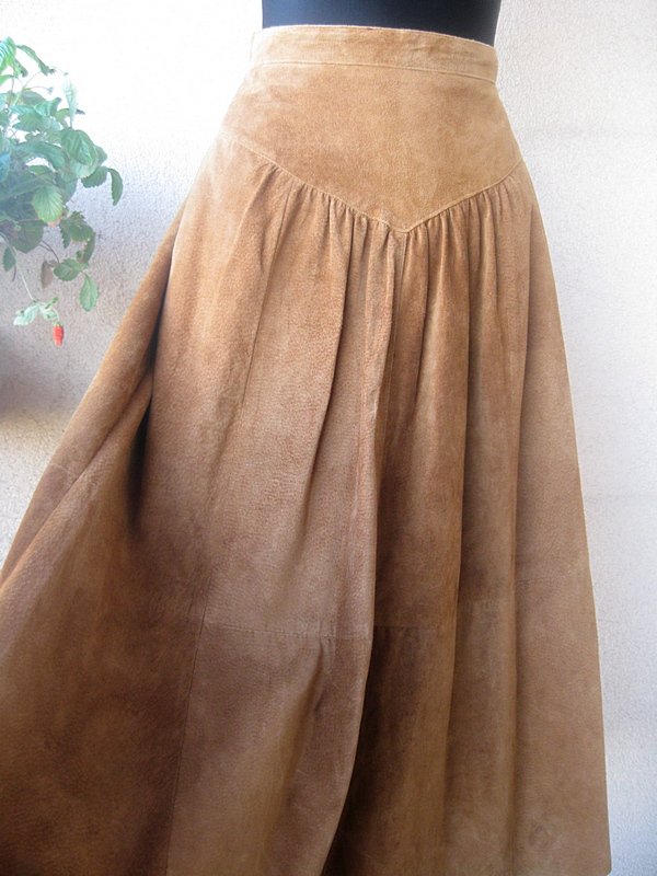 Spódnica z naturalnego zamszu marki H&M, z wyższym stanem, od karczku marszczona. Z tyłu zamek, kieszenie z boku do wewnątrz. Pod spodem podszewka. Minimalne ślady normalnego użytkowania, bez zabrudzeń, przy zamku brak oryginalnej przywieszki. Rozmiar z metki 38. Podaję wymiary mierzone na płasko;