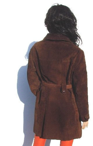 zamszowy płaszczyk z podszewką, zapinany na guziki,