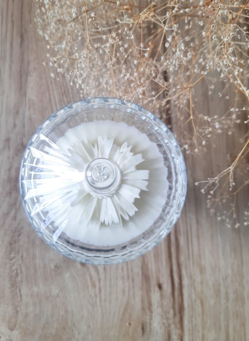 Po wypaleniu świecy pozostaje szklany pucharek z pokrywką na przeróżne desery :)