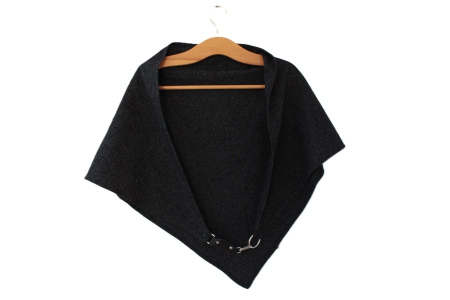 Oryginalna jakościowa trójkątna chusta vintage z zapięciem ze skóry i metalu, które pozwala na tworzenie ciekawych aranżacji.