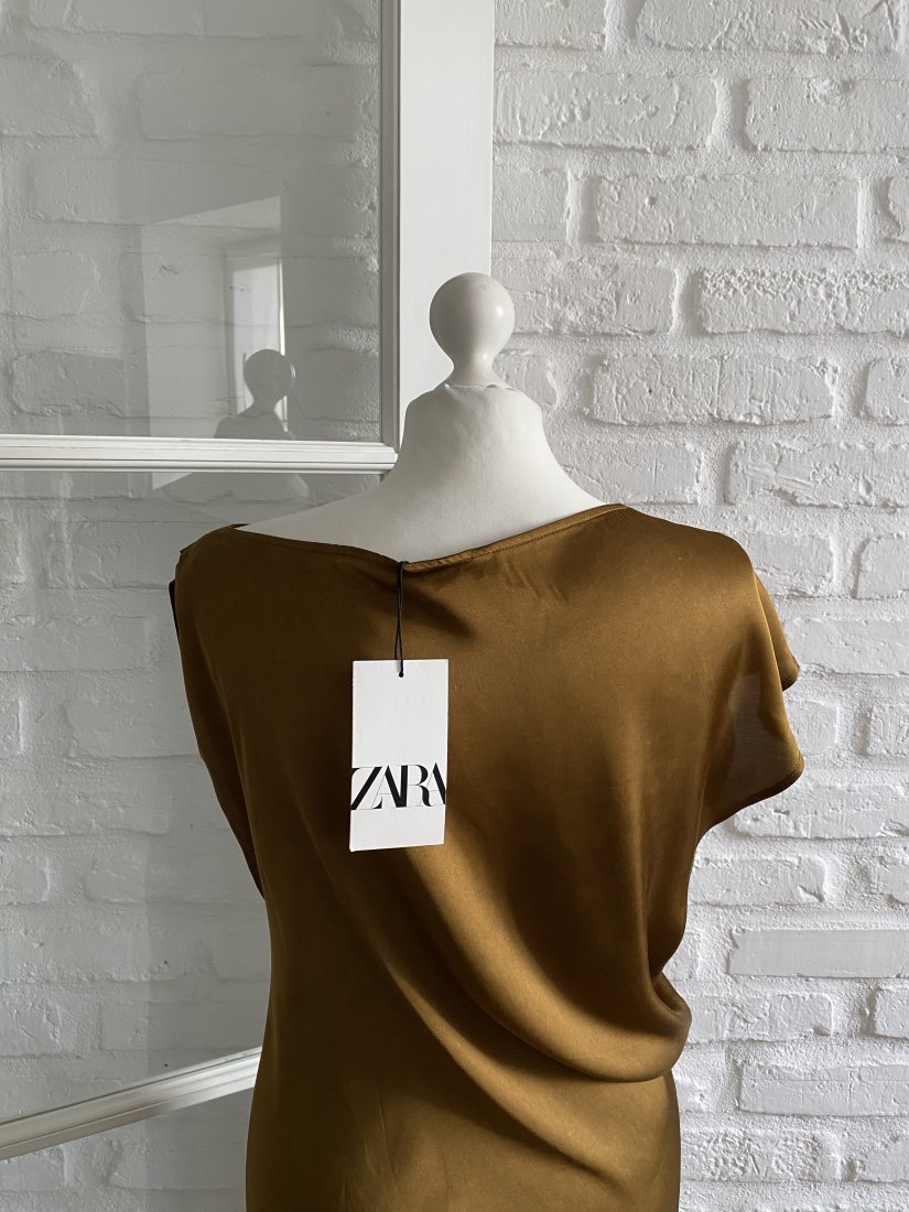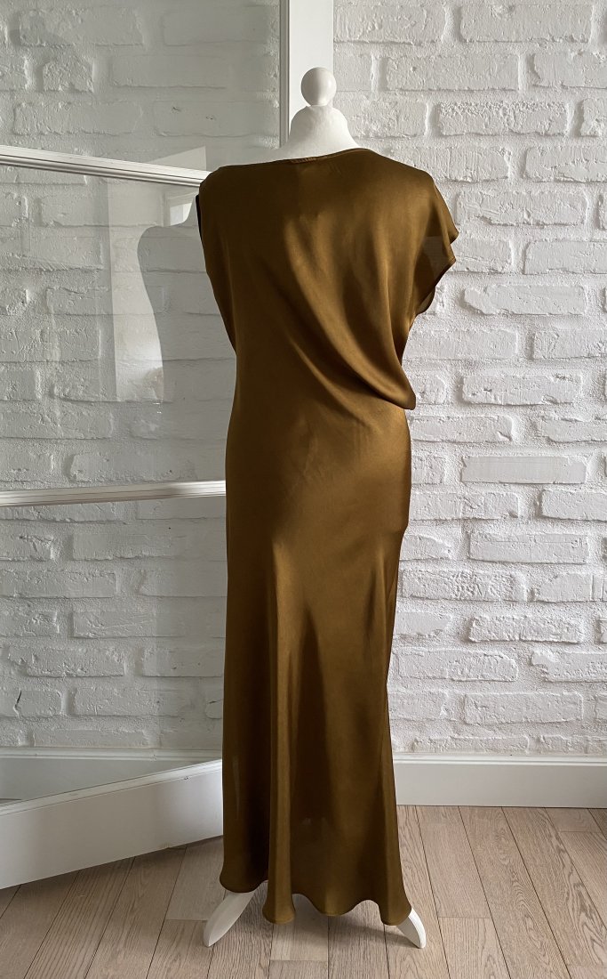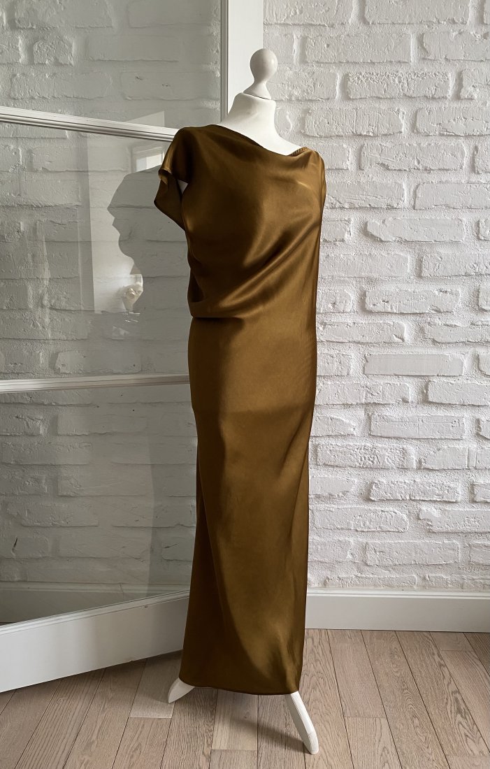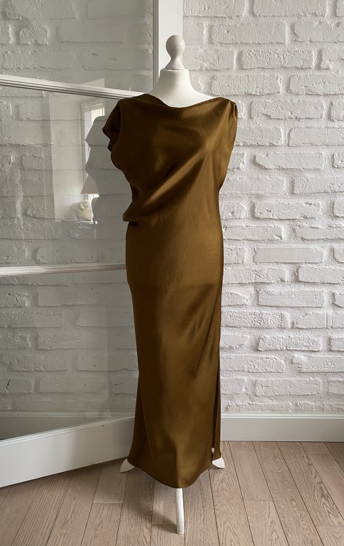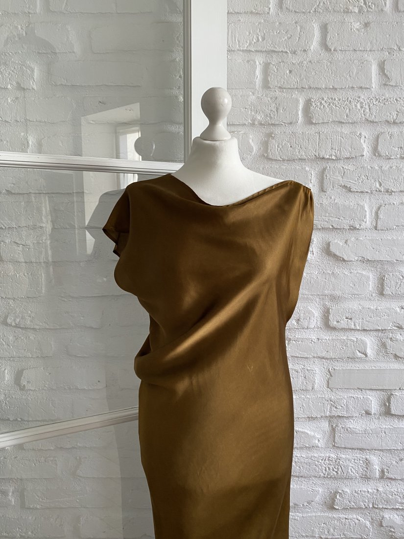 Sukienka z satynowej tkaniny wiskozowej w kolorze złotego brązu (jest przepiękny!).
