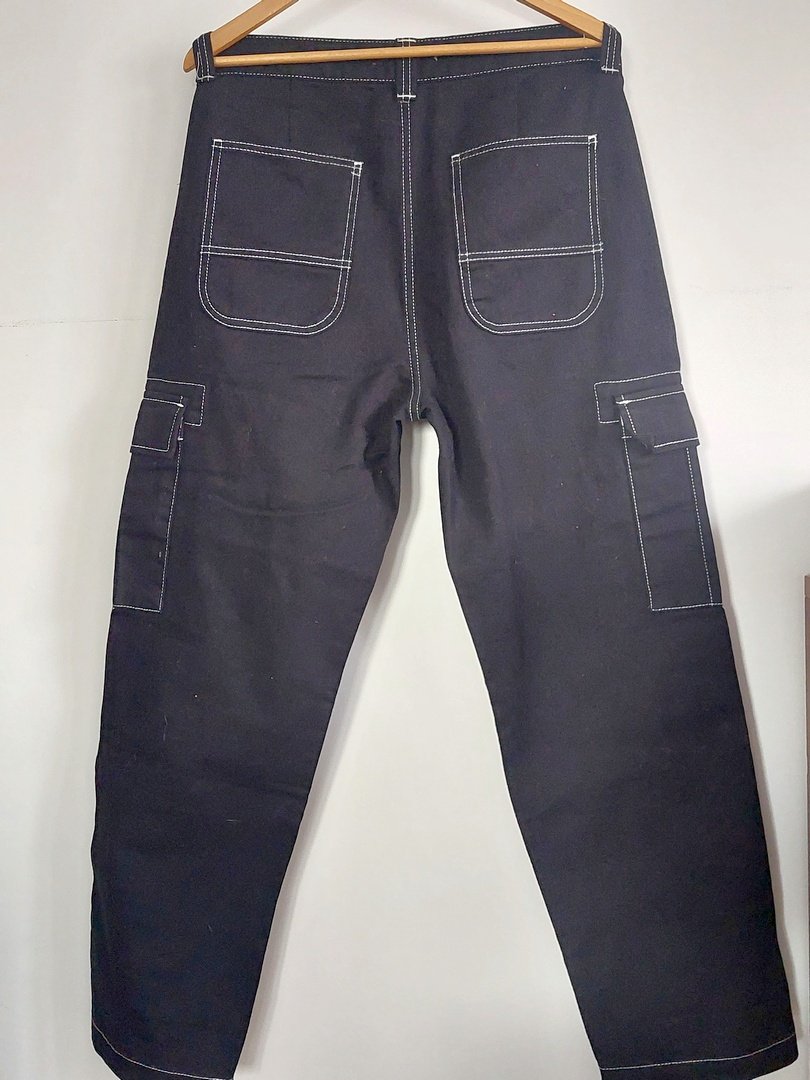 spodnie z grubszej bawełny z nakładanymi kieszeniami marki zara. materiał 100% bawełna. nogawka szeroka, zwężająca się, wysoki stan. kolor czarny, białe wykończenie. rozmiar z metki 42. stan prawdopodobnie nowe bez metki. proszę sprawdzić wymiary. Podaję wymiary mierzone na płasko: