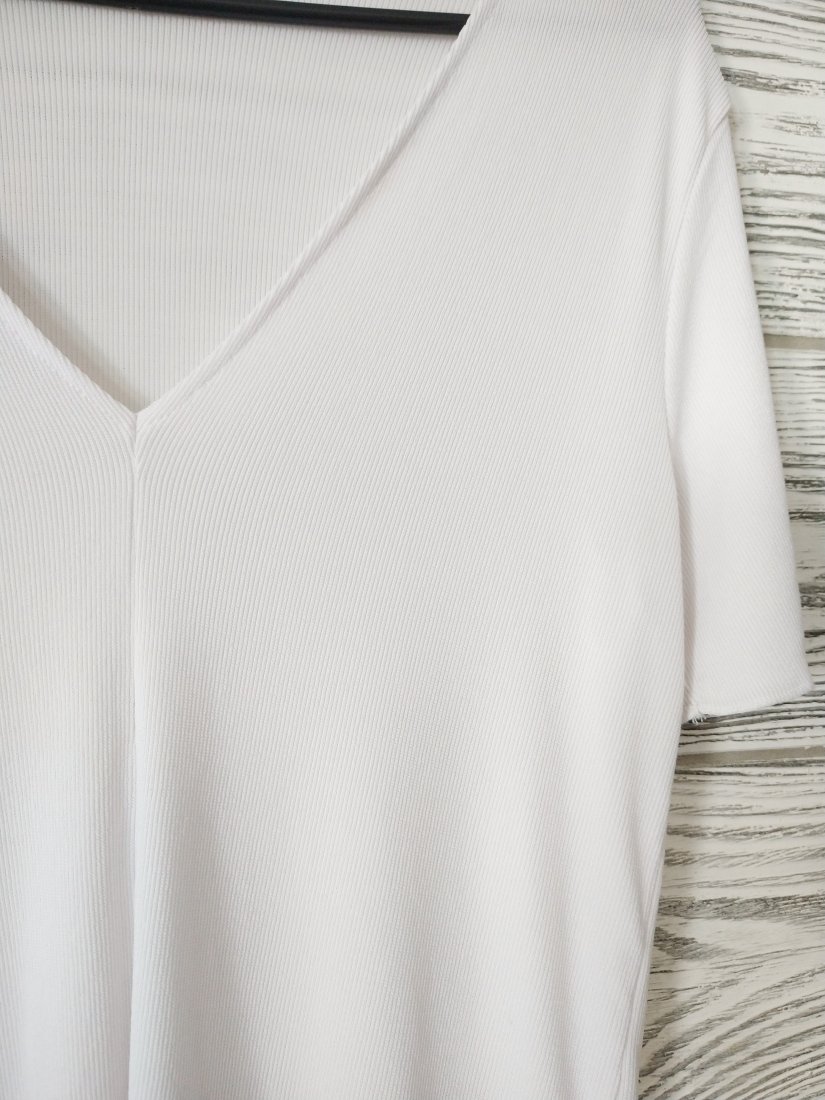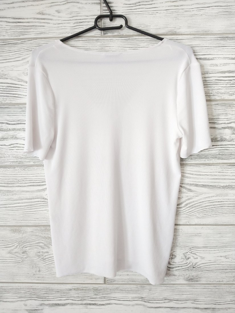 Tagi: #biała bluzka, #biały t-shirt, #klasyczny t-shirt, #prążkowana tkanina
