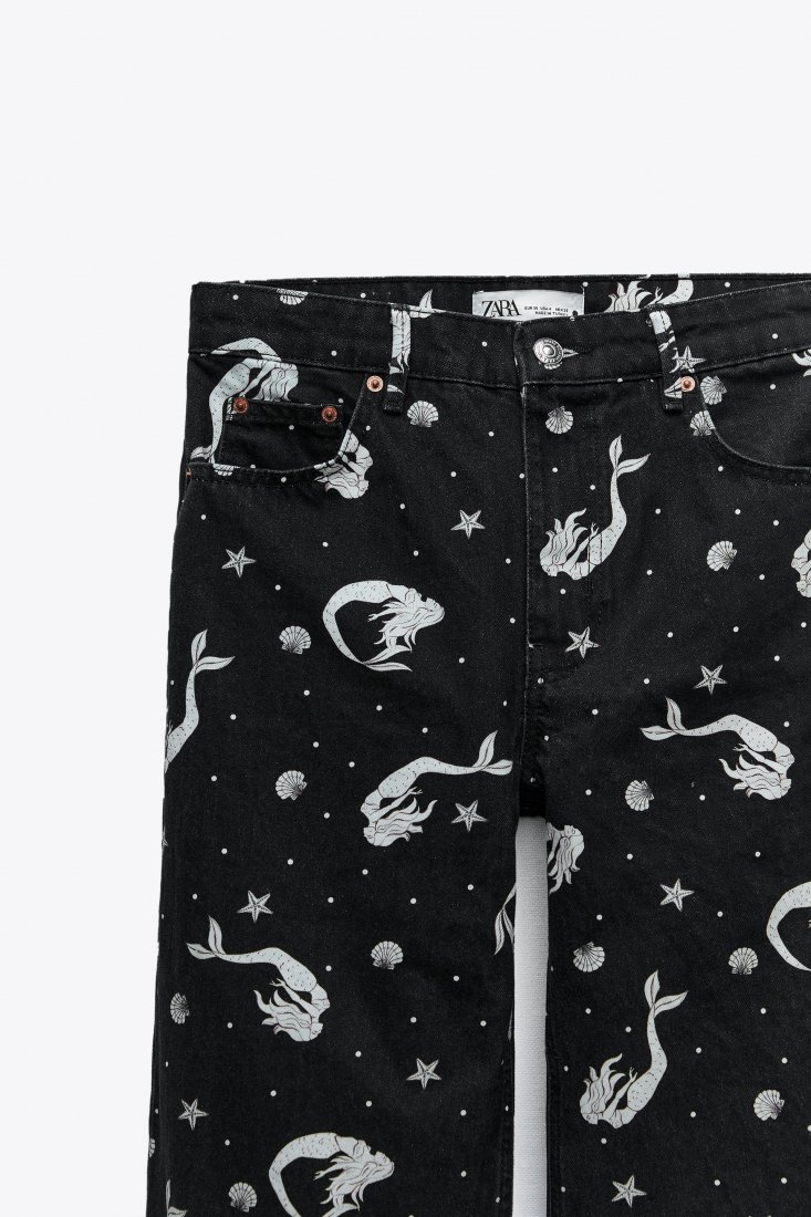 Czarne jeansy z printem, nogawki strzępione.  Nowe, z metką.