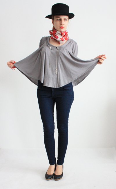 Bluzka o pięknym kroju oversize, obsypana niezwykle delikatnie szczyptą srebra. Nie udało się ująć go na zdjęciu, jest naprawdę ledwie widoczne.