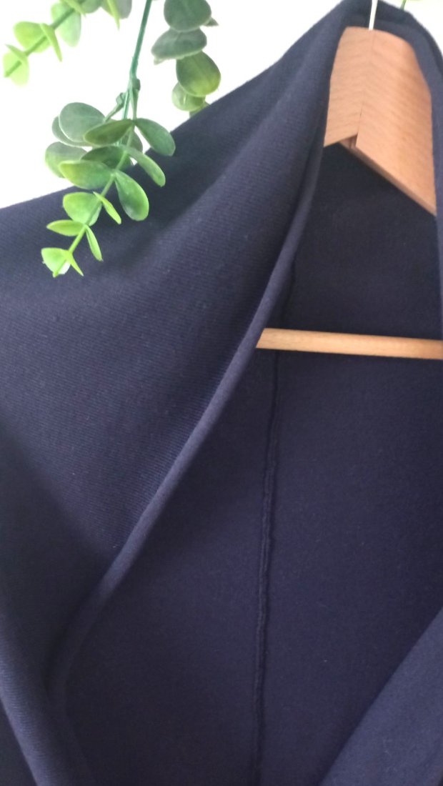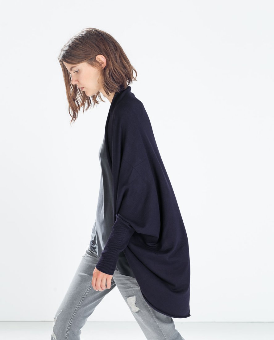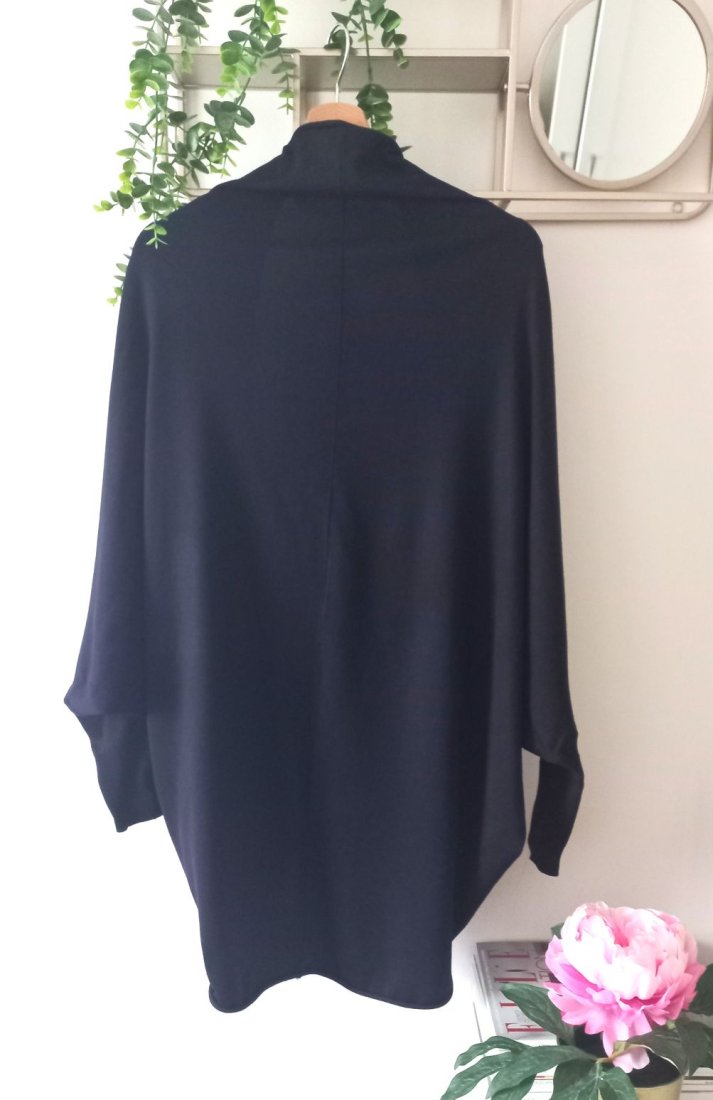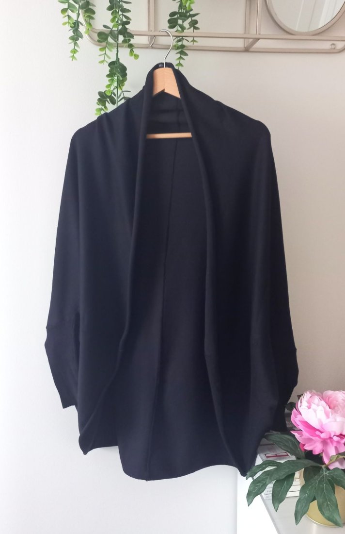 Fason a'la kimono nietoperz. Miękko opływa sylwetkę.