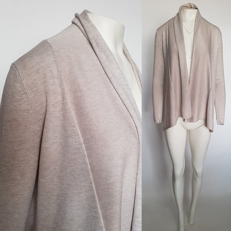 4.  > ZARA Knit narzutka sweter z drapowanym kołnierzem lejąca dzianina wiskozowa 38 M Hu7 (nr 7106958)