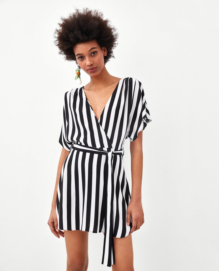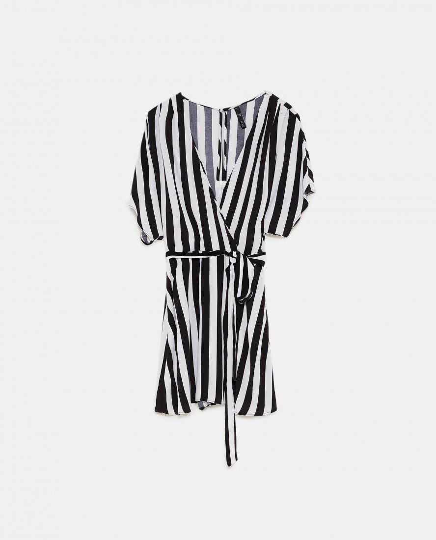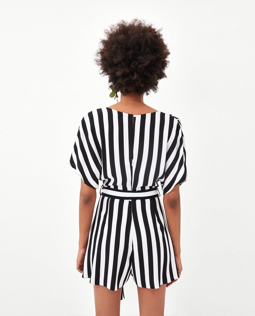 Letni kombinezon z wiązaniem, zapinany z tyłu na kryty suwak, z przodu wstawka a'la spódnica. Nowy z metką.