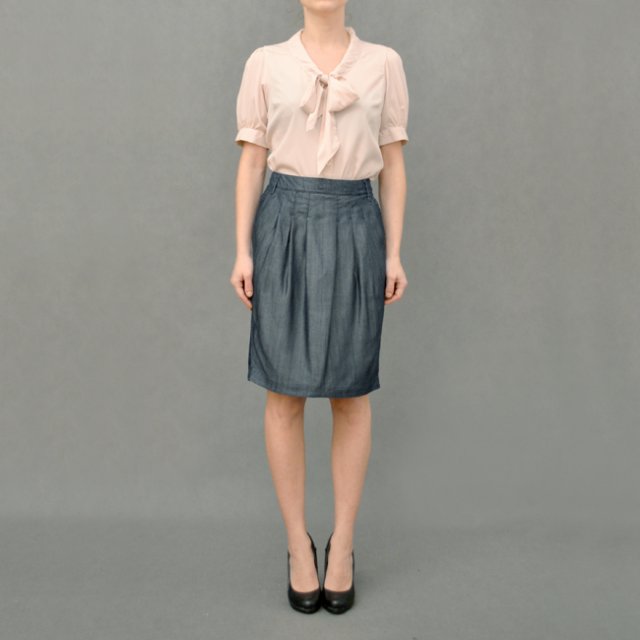 Cudna spódnica marki Zara z cienkiego, lejącego dżinsu. Na każdą porę roku. Z przodu z kontrafałdami nadającymi lekko tulipanowego fasonu. Polecam bardzo.