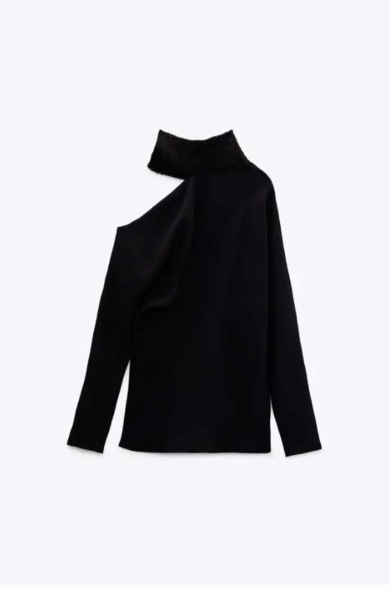Czarna, elegancka bluzka z wycięciem na ramieniu, nowa z metką.