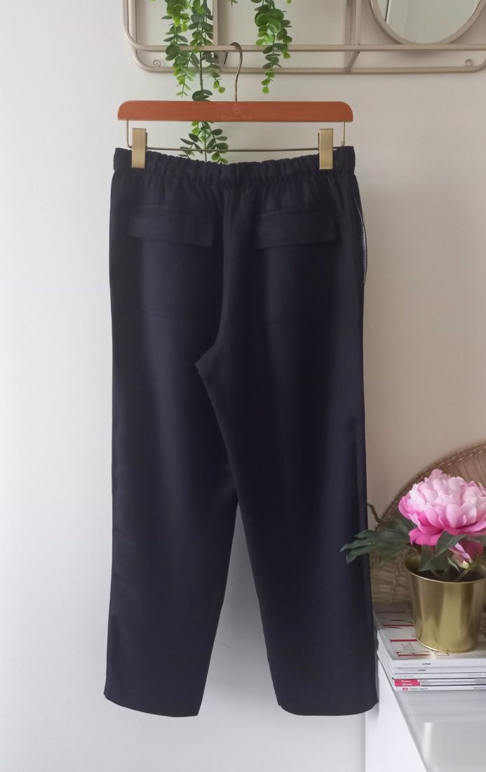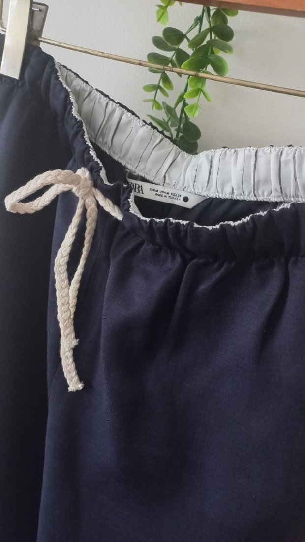 Gumka w pasie i troczek z plecionki. Kieszenie po bokach.