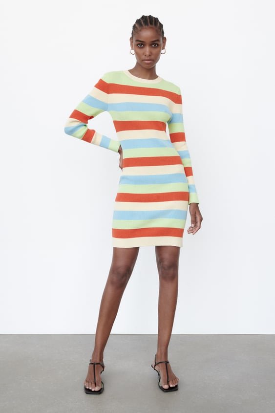 Dopasowana sukienka z prążkowanego materiału, nowa z metką.