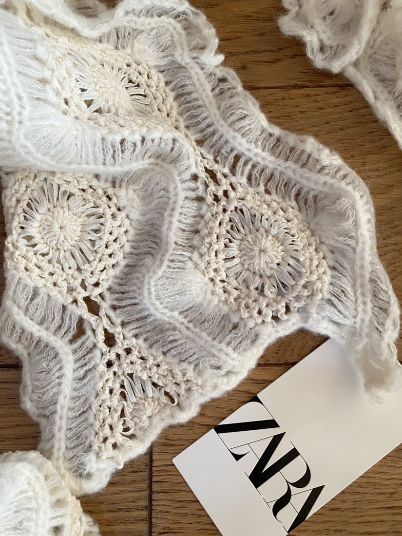 Szalik z dzianiny szydełkowej. Wykończenie w fale.