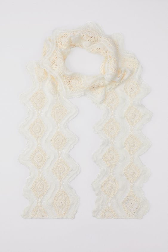 Szalik z dzianiny szydełkowej. Wykończenie w fale.