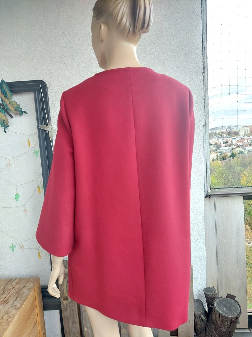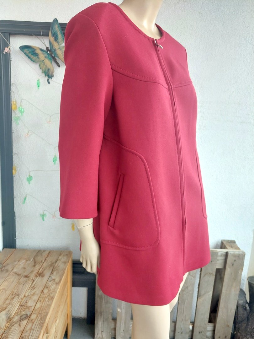 płaszcz wiosna/jesień marki zara woman. kolor bordowy. Materiał 31% wiskoza, 65% poliester, 4% elastan. pod spodem wiskozowa podszewka. zapięcie na zamek , oryginalne naszywane kieszenie. Rozmiar z metki XL. na manekinie o rozmiarze małe 38. proszę sprawdzić wymiary. stan super, jak nowy. Podaję wymiary mierzone na płasko;