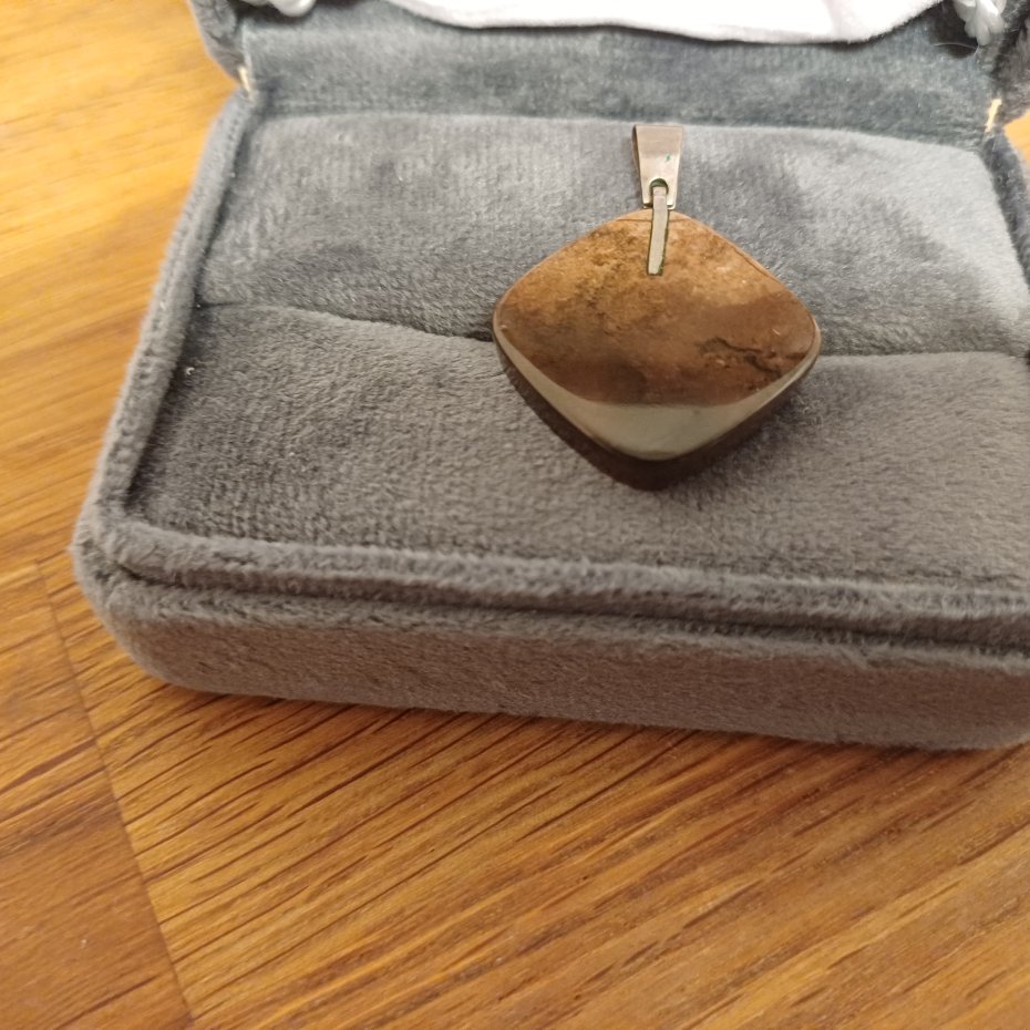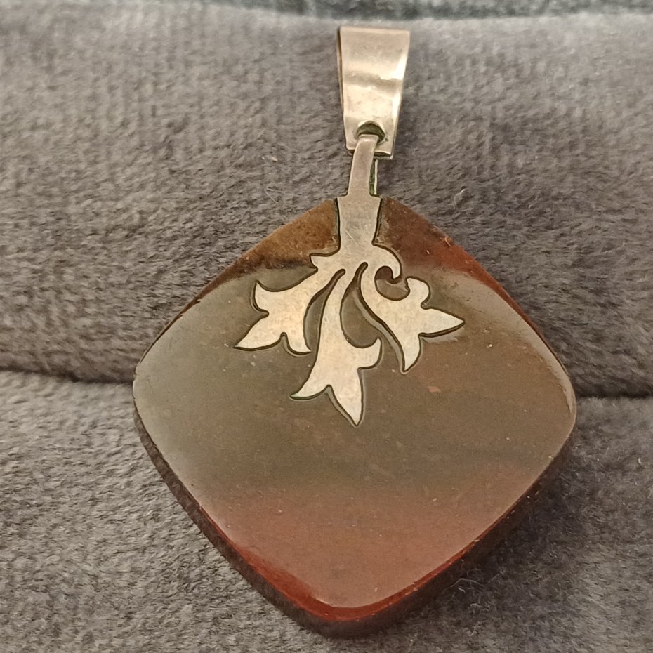 Zawieszka z brązowego opalu?inkrustowane srebrem.