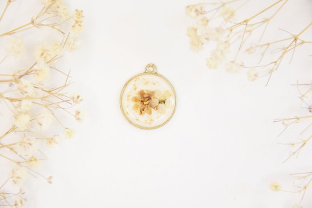 Przepiękna zawieszka wykonana z trwałej żywicy, w której zostały zatopione prawdziwe suszone kwiaty.