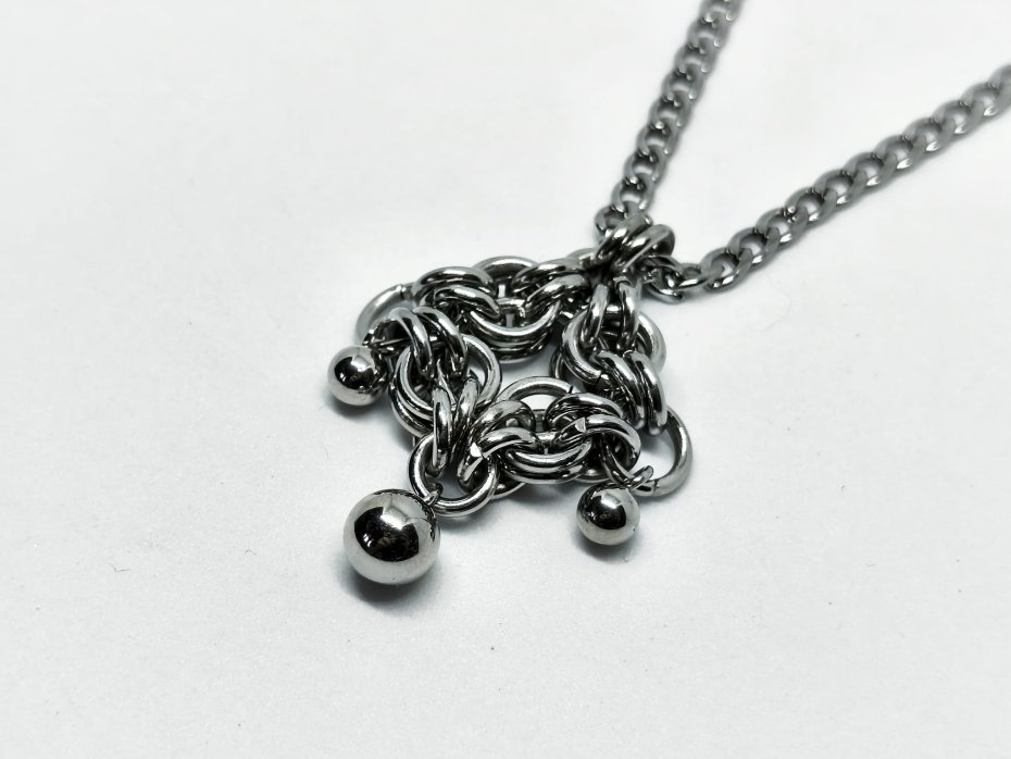 zawieszka chainmaille, zawieszka z kuleczką, zawieszka gothic, zawieszka punk, zawieszka vampire, zawieszka witchy, zawieszka stal chirurgiczna, zawieszka metalowa, zawieszka na łańcuszku, zawieszka alternatywna, zawieszka na koncert, zawieszka festiwalowa, zawieszka dark, zawieszka fantasy, biżuteria kolczugowa, biżuteria mroczna, biżuteria alt, biżuteria stalowa, biżuteria gothic