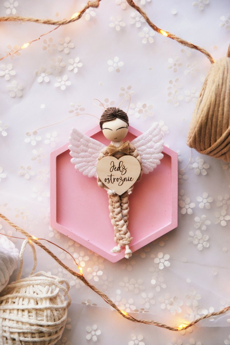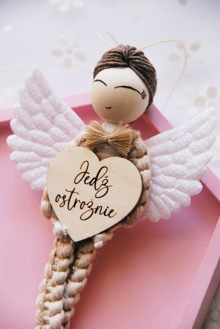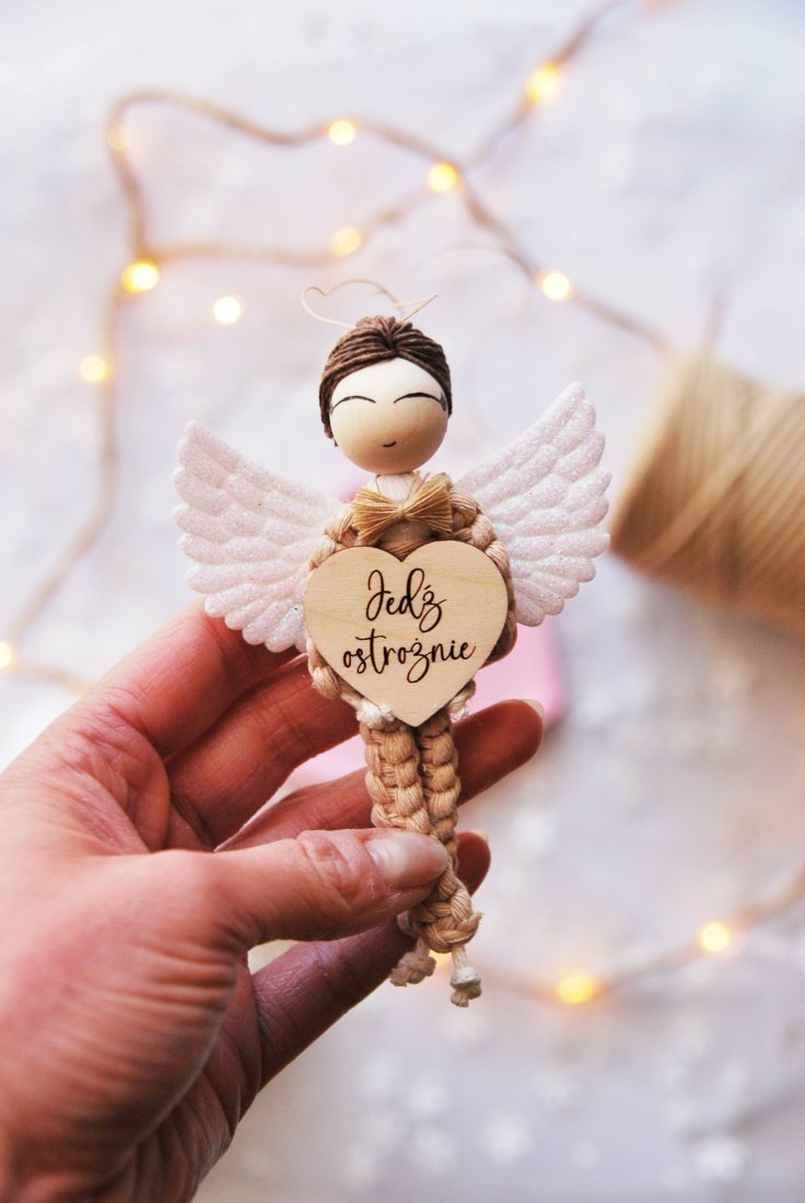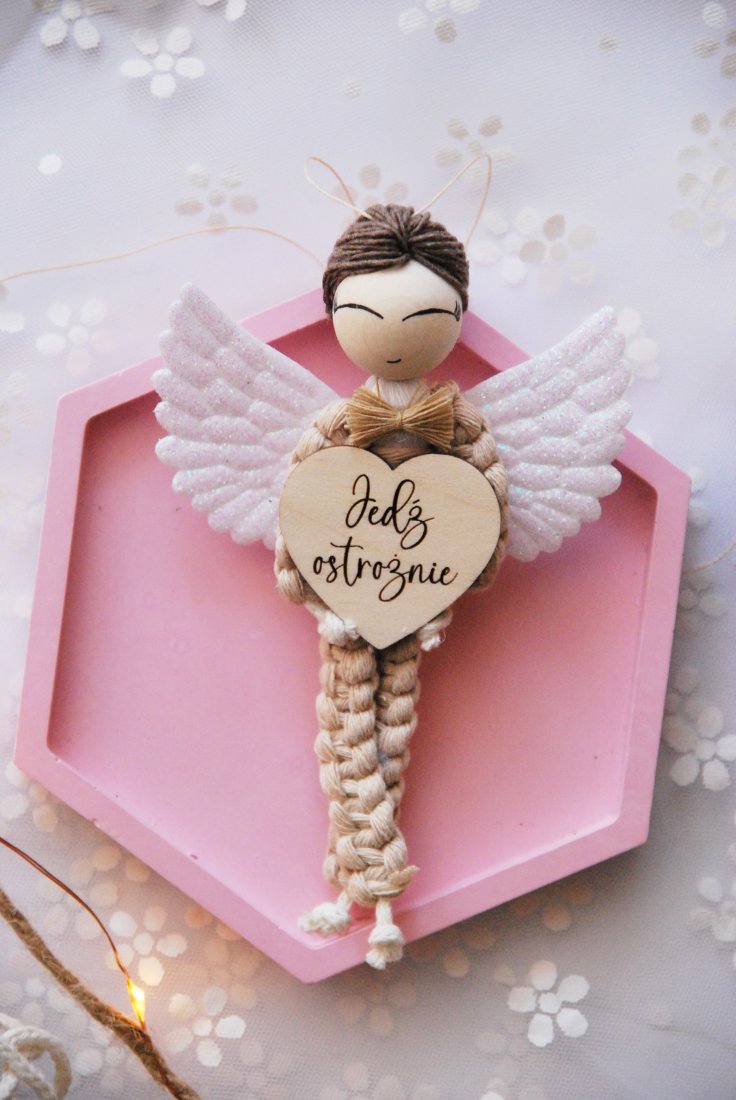 Ręcznie wykonany z dbałością o każdy detal aniołek to nie tylko piękna ozdoba, ale również subtelne przypomnienie o bezpiecznej jeździe. Doskonały prezent dla bliskiej osoby, kierowcy lub jako drobny gest troski.