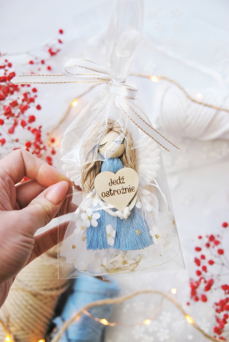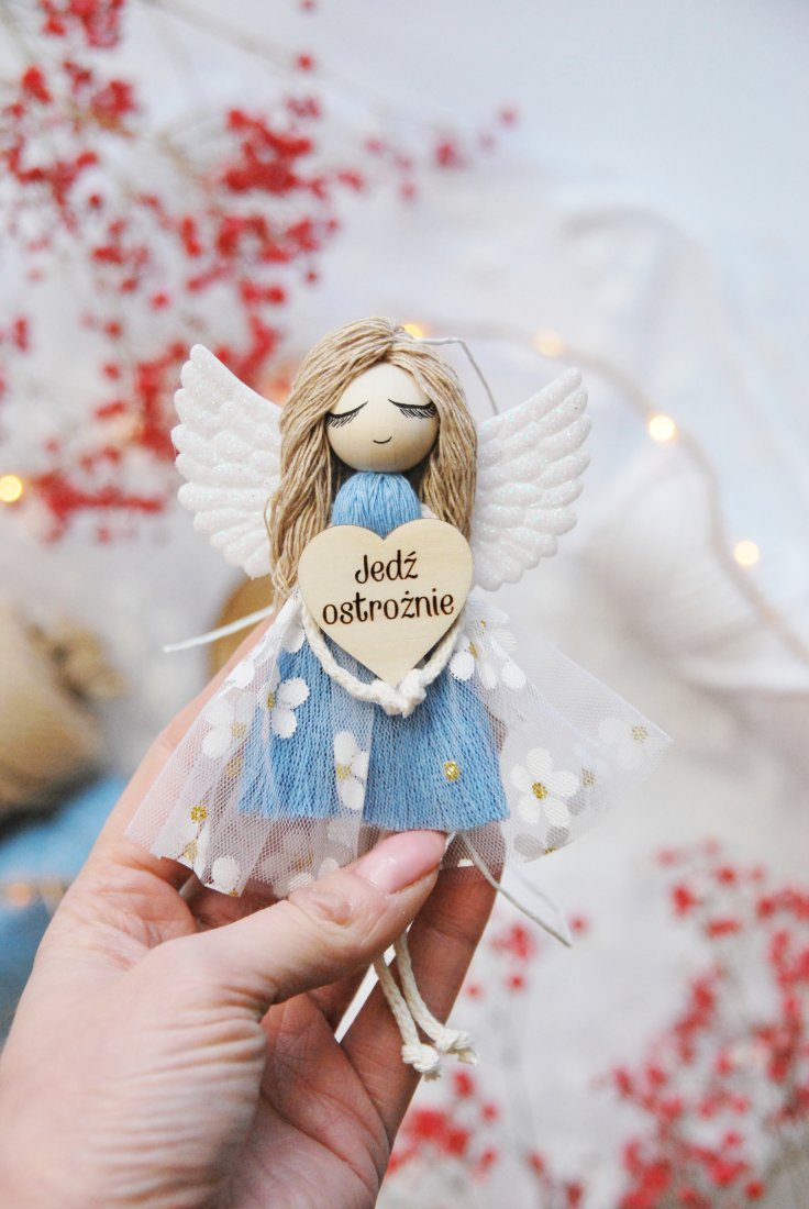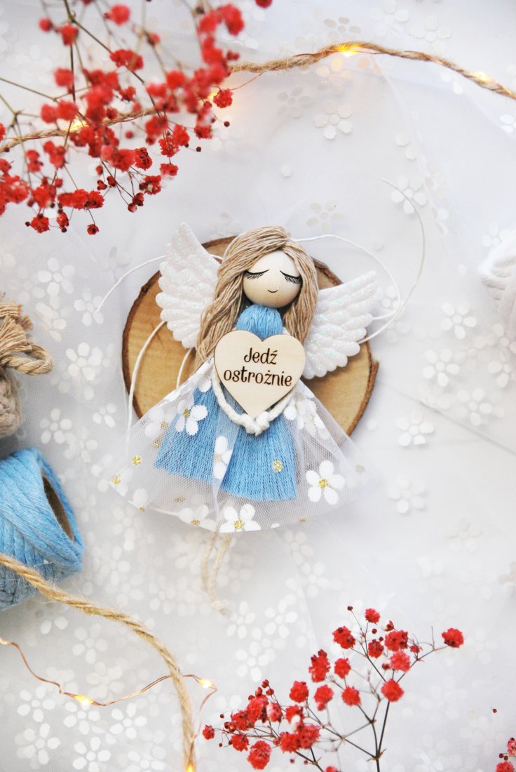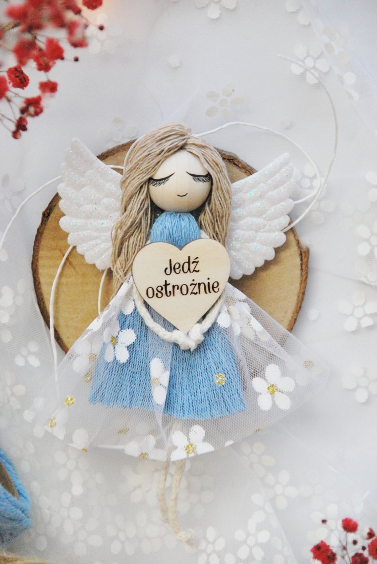 Ręcznie wykonany z dbałością o każdy detal aniołek to nie tylko piękna ozdoba, ale również subtelne przypomnienie o bezpiecznej jeździe. Doskonały prezent dla bliskiej osoby, kierowcy lub jako drobny gest troski.