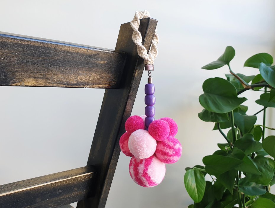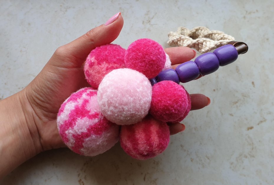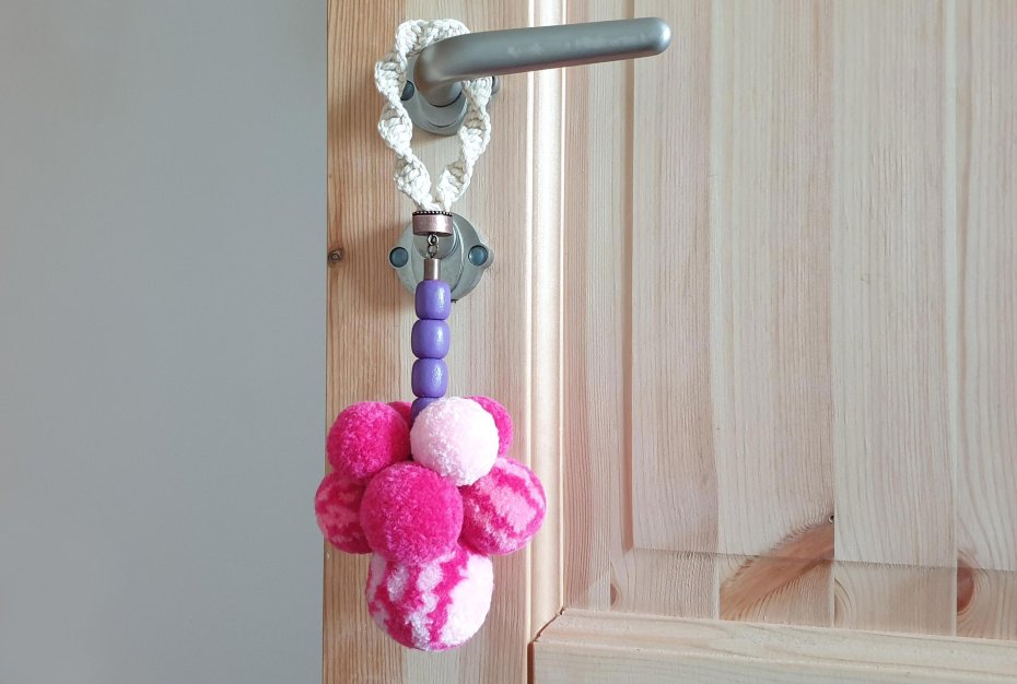 Zawieszka na klamkę z pomponów – miękki komunikat spokoju.