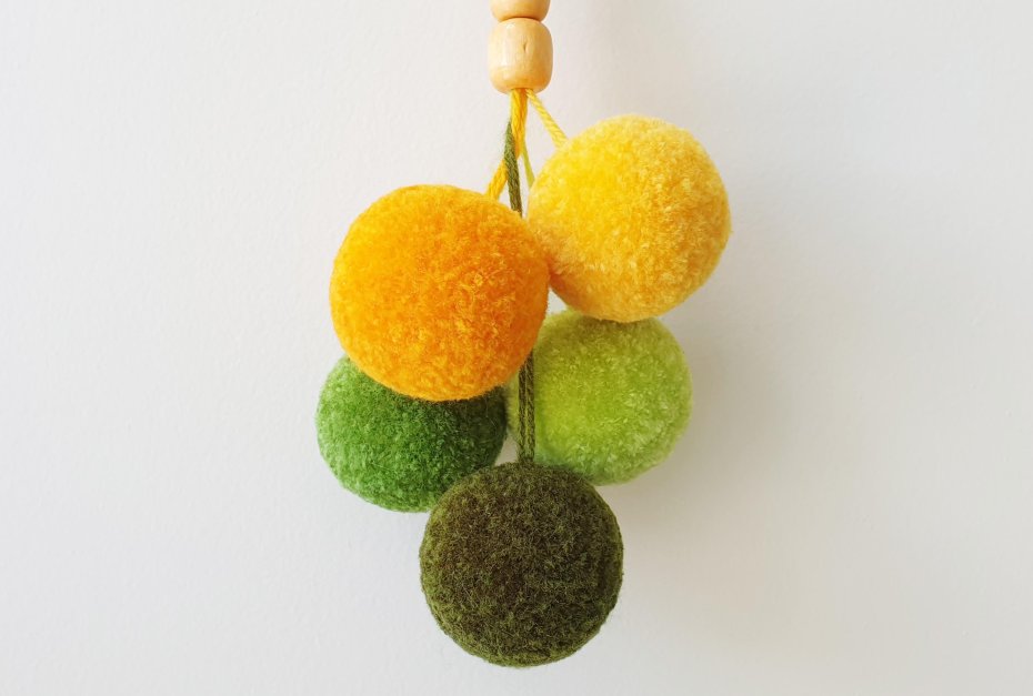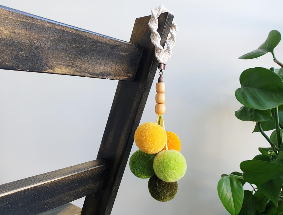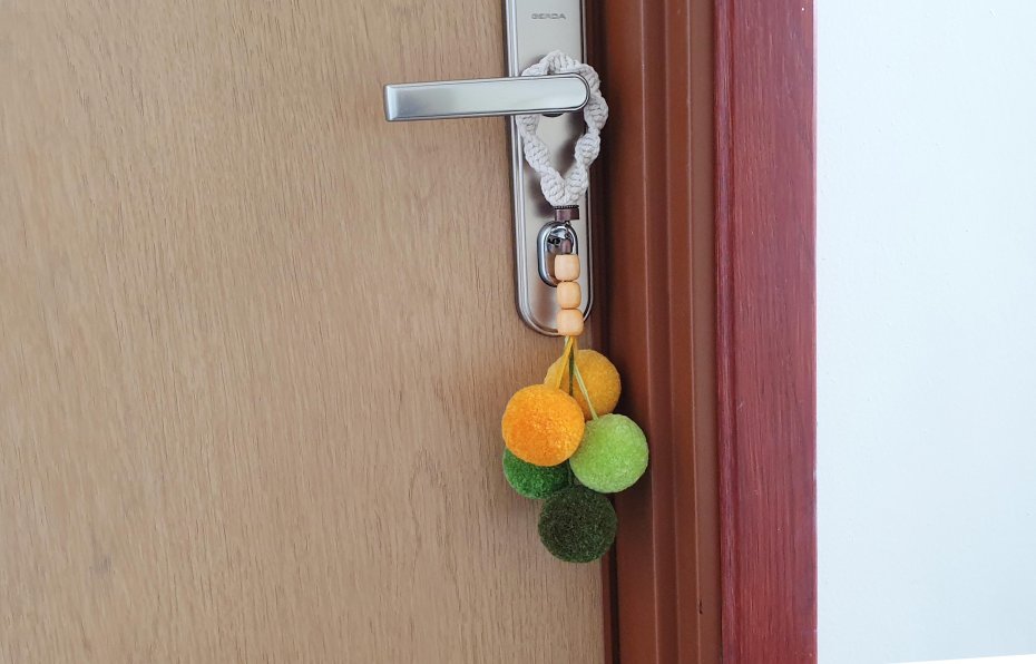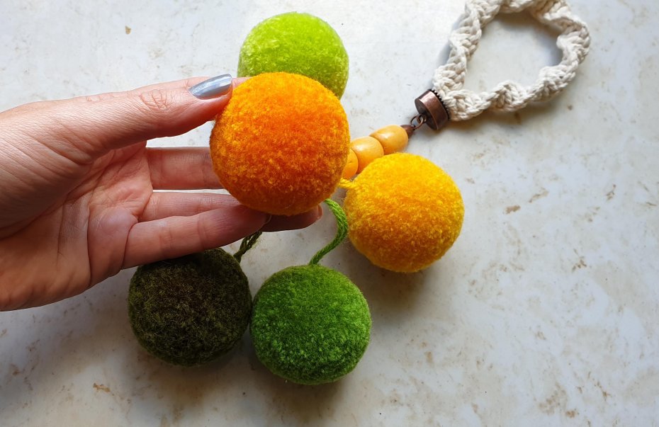 Zawieszka na klamkę z pomponów – miękki komunikat spokoju.