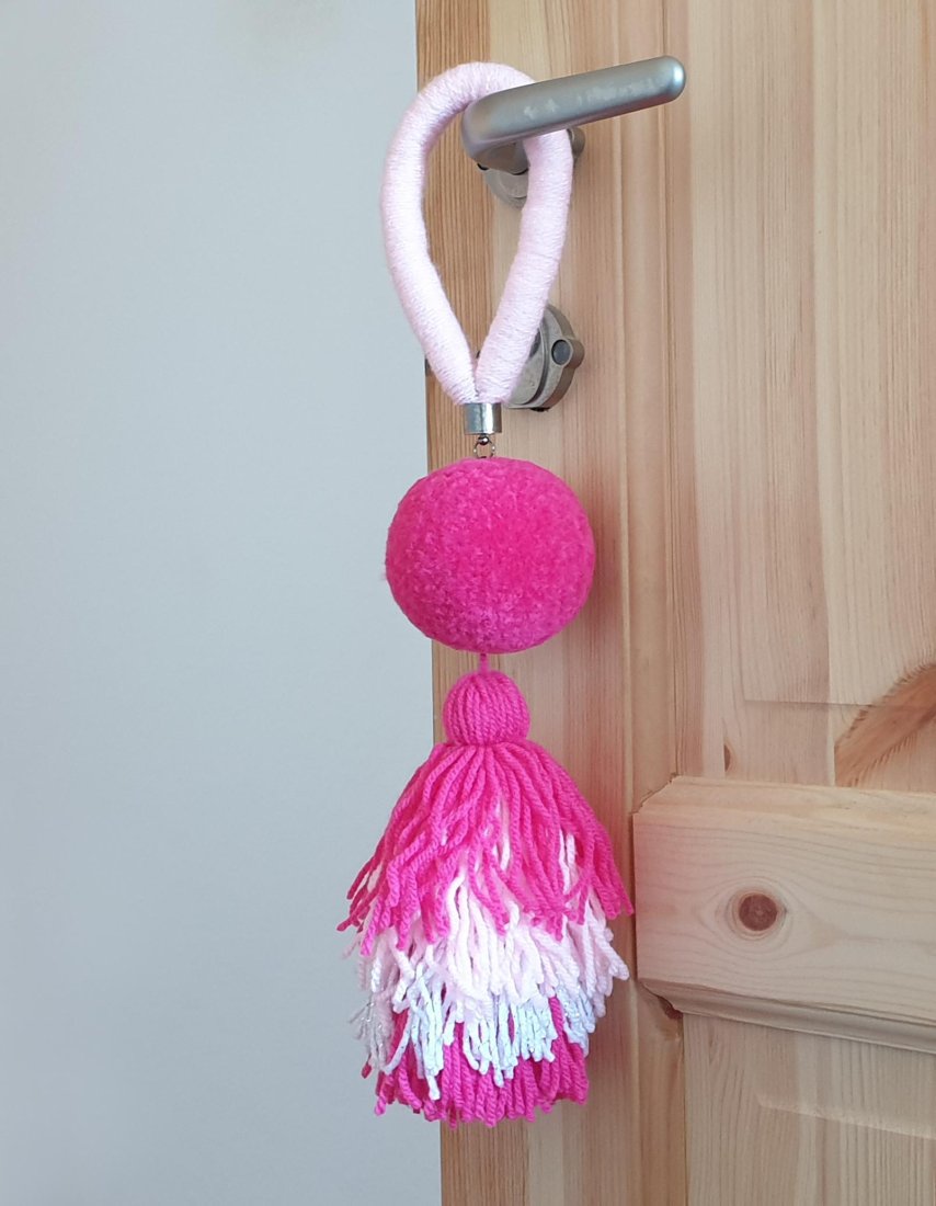 Zawieszka na klamkę z pomponem i frędzlem – subtelny komunikat spokoju