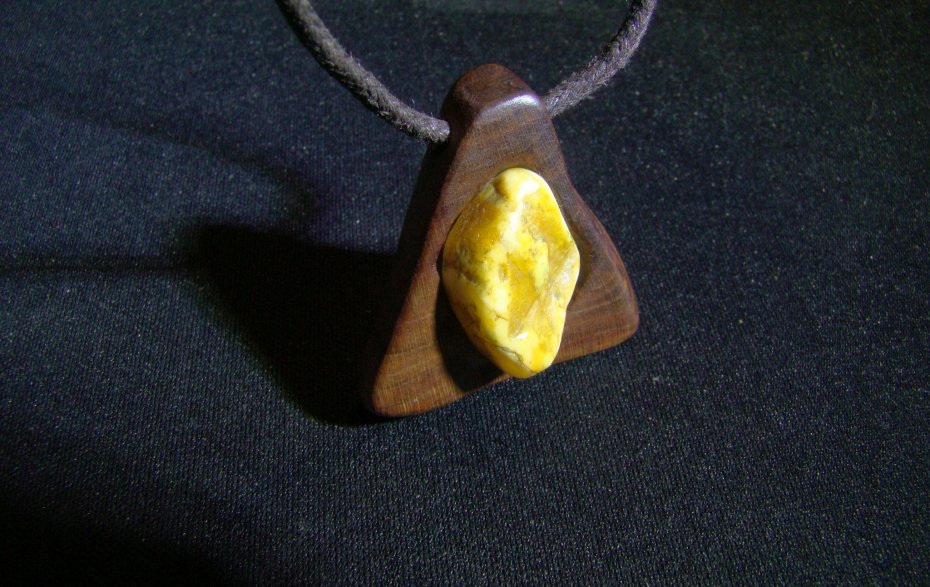 Wisior niepowtarzalny, zrobiony w 1 egzemplarzu. Ma naturalny charakter. Drewno - bursztyn.