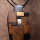 Wisior złożony z 5 gatunków drewna z uchwytem, zawieszką ze starej, kutej stali.