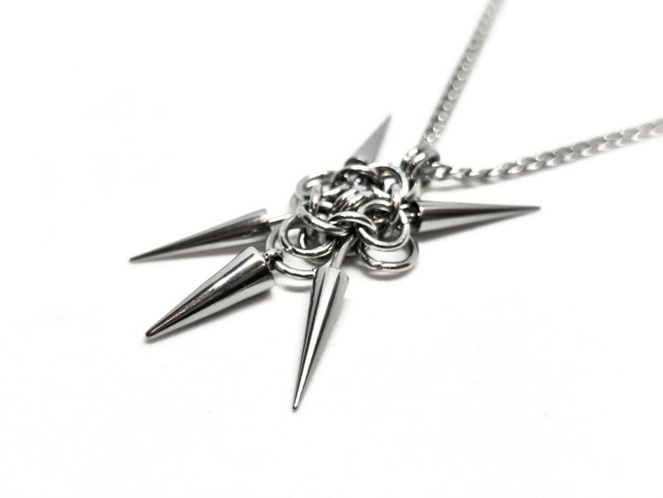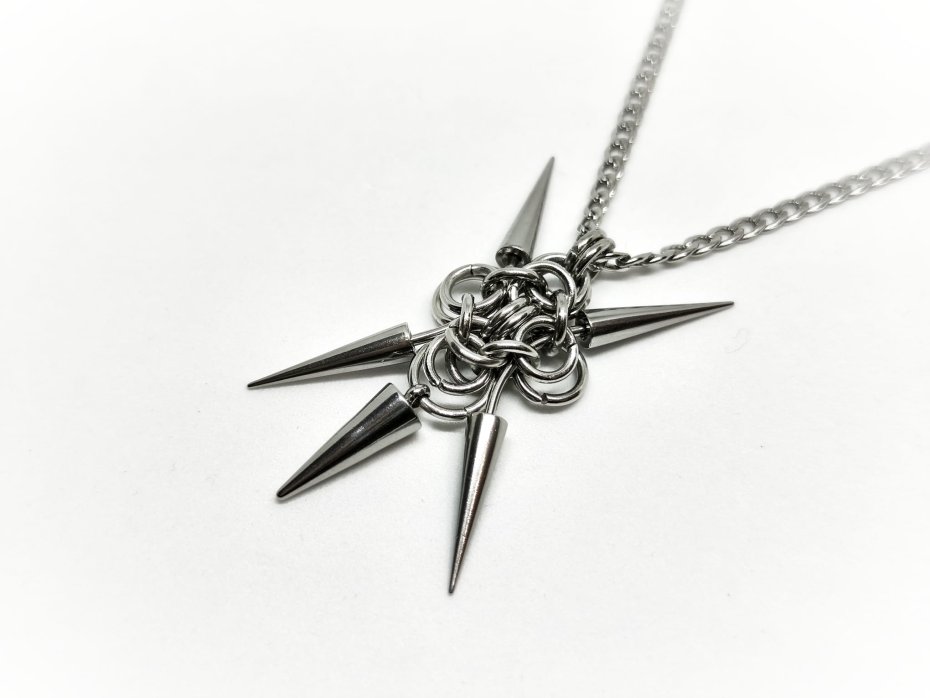 zawieszka chainmaille, piercing kolczyki, kolce zawieszka, stal chirurgiczna, stal nierdzewna, cyber goth, industrial , punk zawieszka, dystopijna , post-punk naszyjnik, dark techno, metal alternatywny, y2k dystopia, rave akcesoria, koncert industrial, festiwal cyber, cosplay dystopijny, LARP sci-fi, surowa, biżuteria mechaniczna, naszyjnik ciężki, zawieszka na szyję, alternatywna, unisex, damska, męska, damski, męski, black metal, heavy metal, koncert, rękodzieło, handmade
