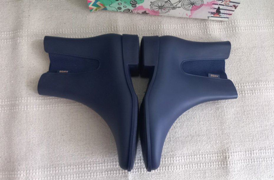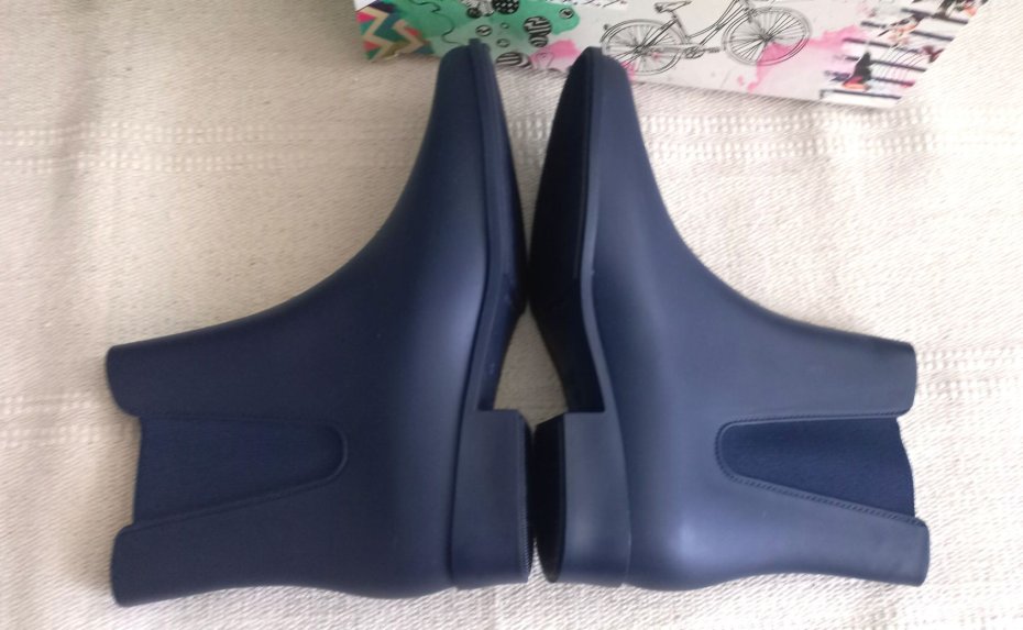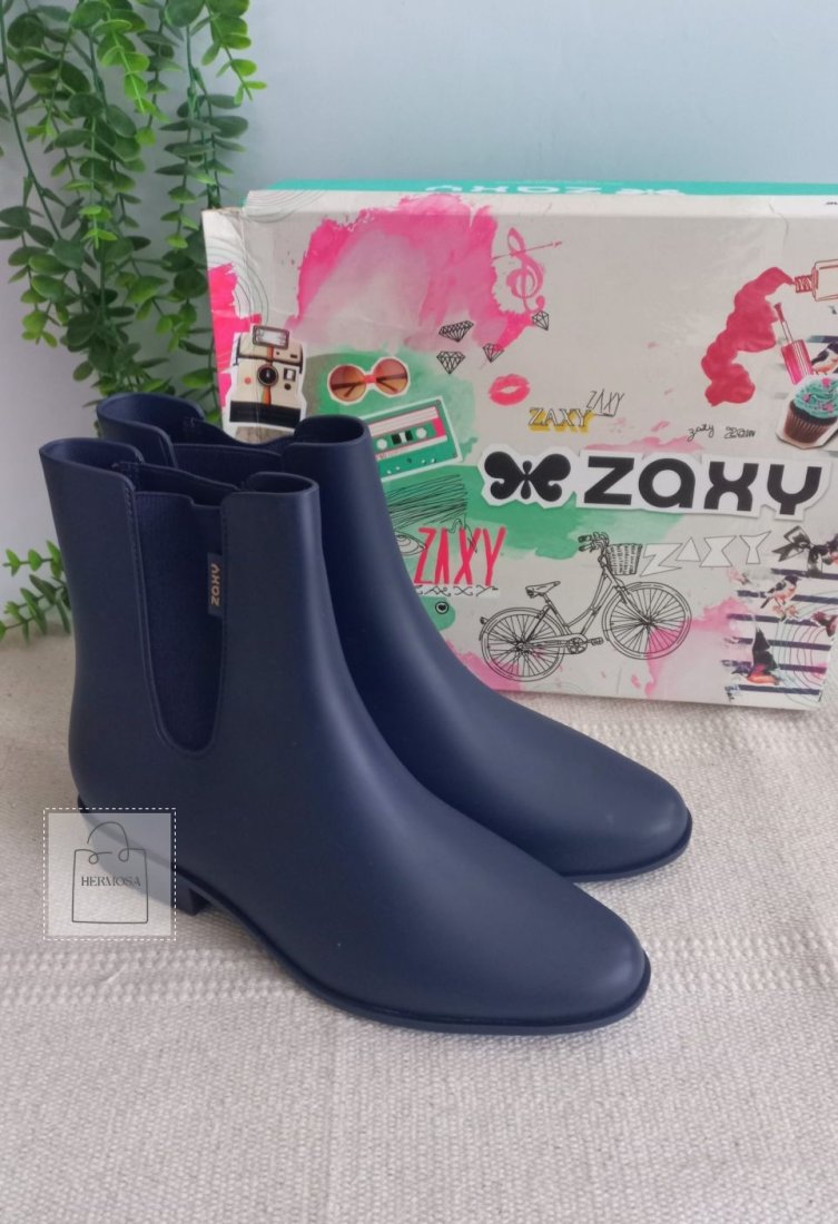 Granatowe kalosze botki Zaxy. Elegancki satynowy mat, nie jest błyszczący.